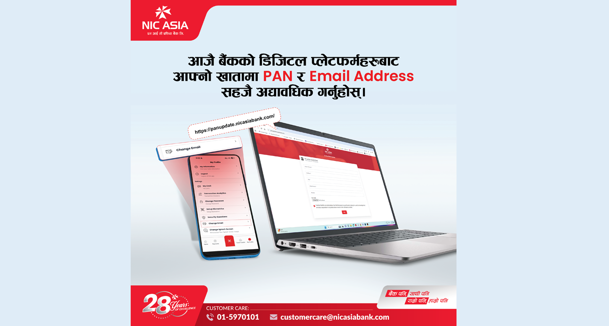 प्यान र ईमेल ठेगाना अद्यावधिक गर्न ग्राहकलाई एन आई सी एशिया बैंकको अनुरोध