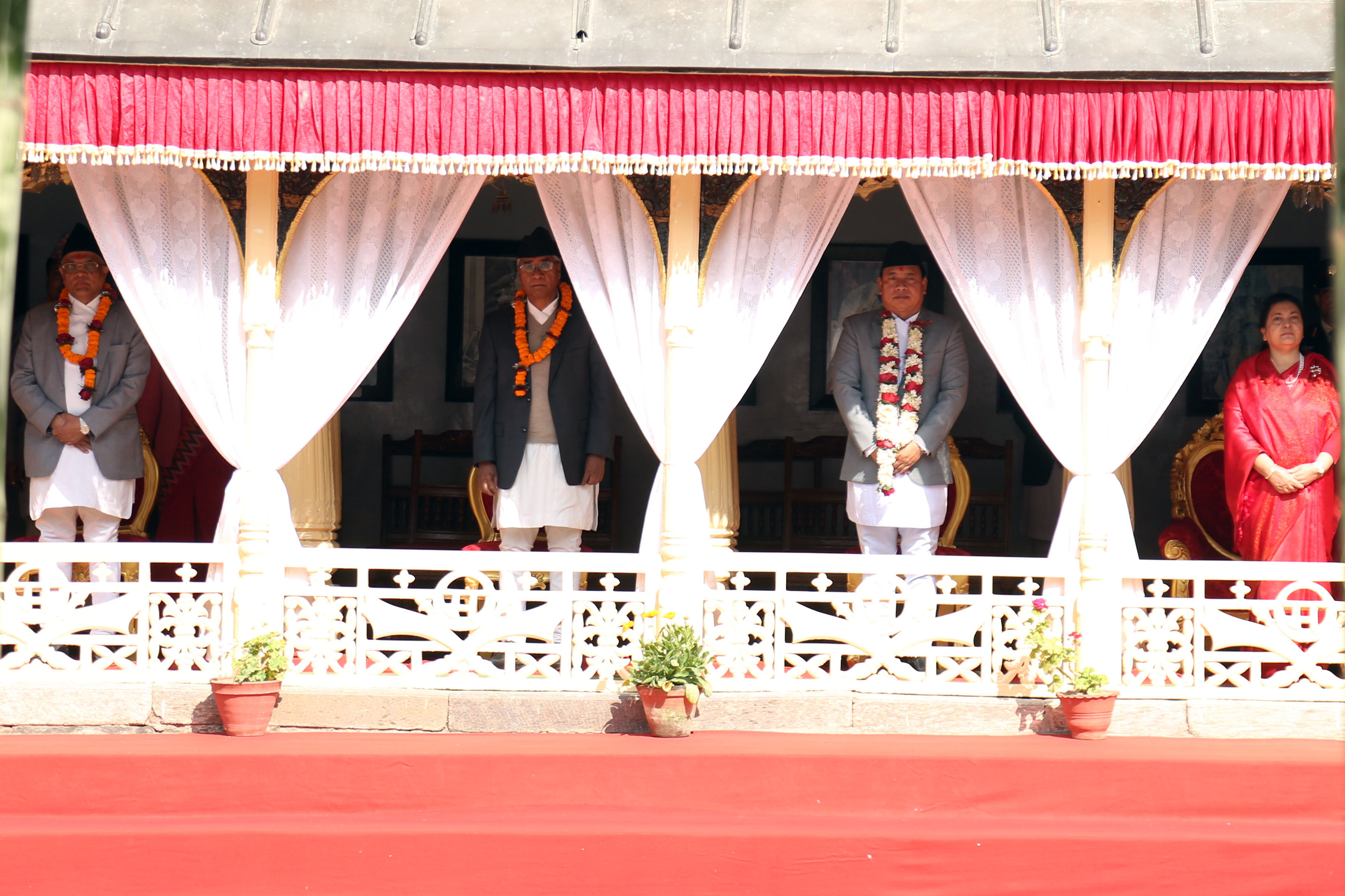 Vice-President Nanda Bahadur Pun, Prime Minister Sher Bahadur Deuba, Chief Justice Gopal Prasad Parajuli, ministers, chiefs of constitutional bodies and chiefs of security bodies also attended the ritual.