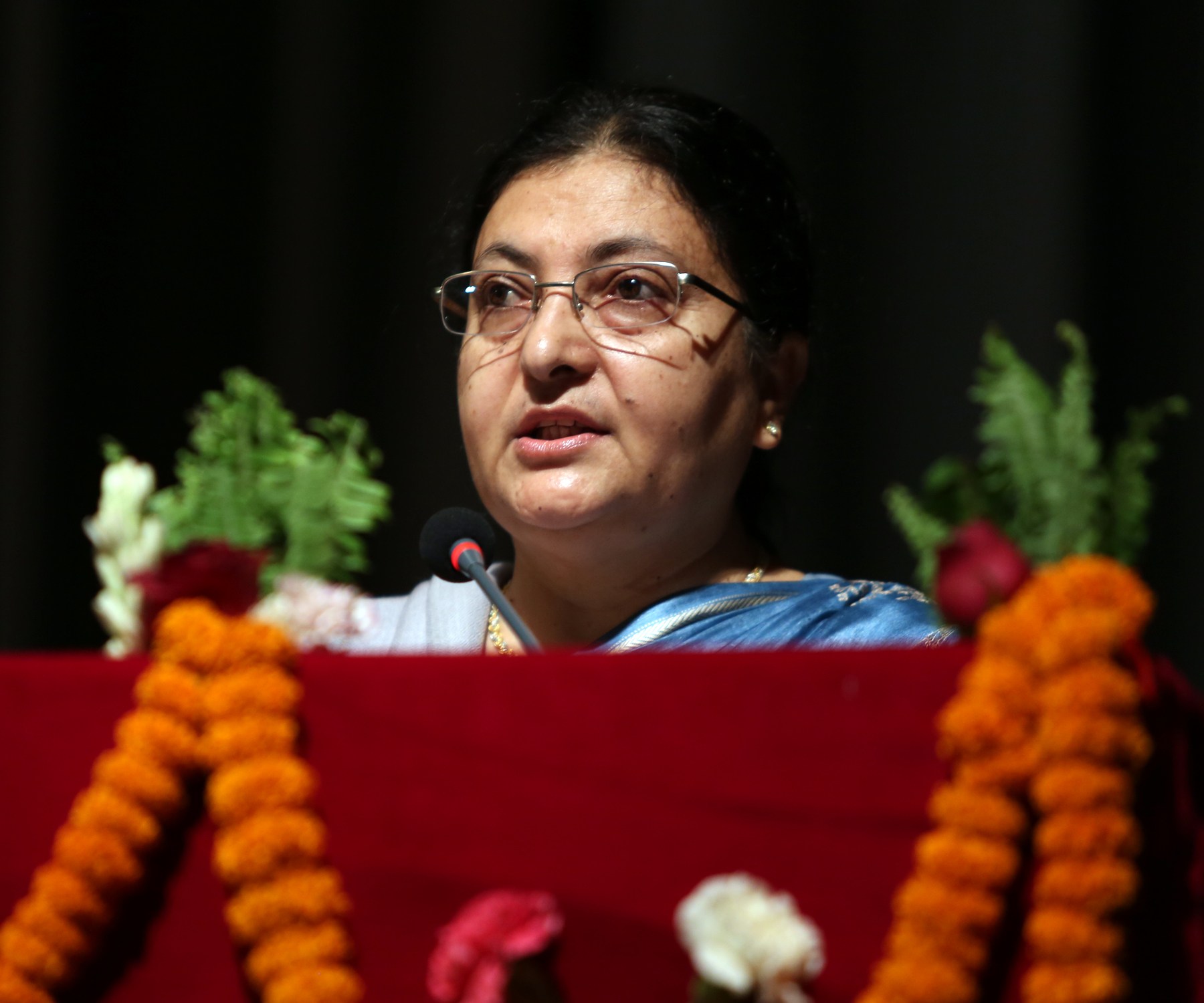 राष्ट्रपति विद्यादेवी भण्डारीले ऐतिहासिक राजनीतिक उपलब्धिलाई थप सुदृढीकरण गरेर राजनीतिक स्थायित्वसहित आर्थिक समृद्धि हासिल गर्ने राष्ट्रिय लक्ष्यमा नेपाली एकजुट हुनुपर्ने बताएकी छन् ।
