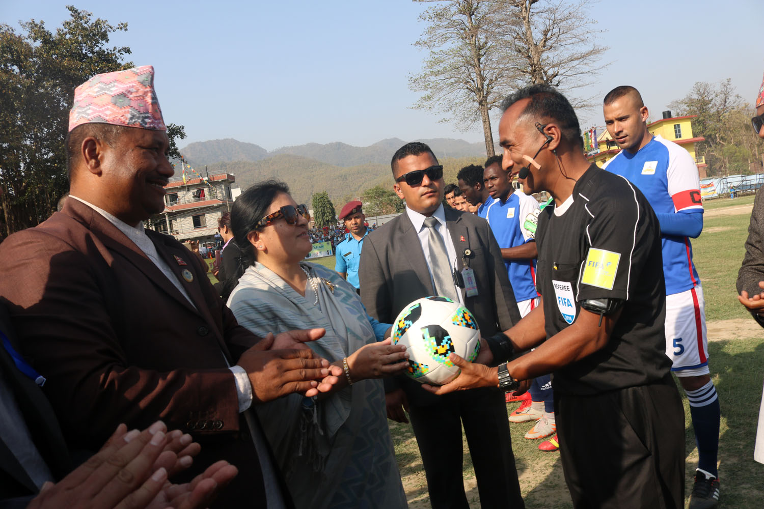 राष्ट्रपति विद्यादेवी भण्डारीले तेस्रो मदन भण्डारी गोल्डकप नकआउट फुटबल प्रतियोगिताको आज यहाँ उद्घाटन गर्नुभएको छ ।