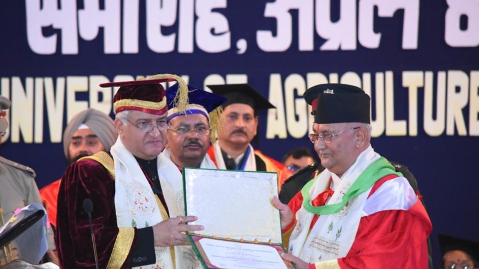 Prime Minister KP Sharma Oli who is presently on the three-day State visit to India, was conferred on the honorary PhD degree by the GB Pant University of Agriculture and Technology in Uttarakhand State, India.