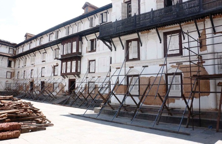 नौतले दरबार चीन सरकारको सहयोगमा पुनःनिर्माण भइरहेको छ । यसको काम ६० प्रतिशत सम्पन्न भएको विभागले जनाएको छ । अमेरिकी सरकारको सहयोगमा पुनःनिर्माण भइरहेको गद्दी बैठकको पुनःनिर्माण ८० प्रतिशत सम्पन्न भएको छ ।