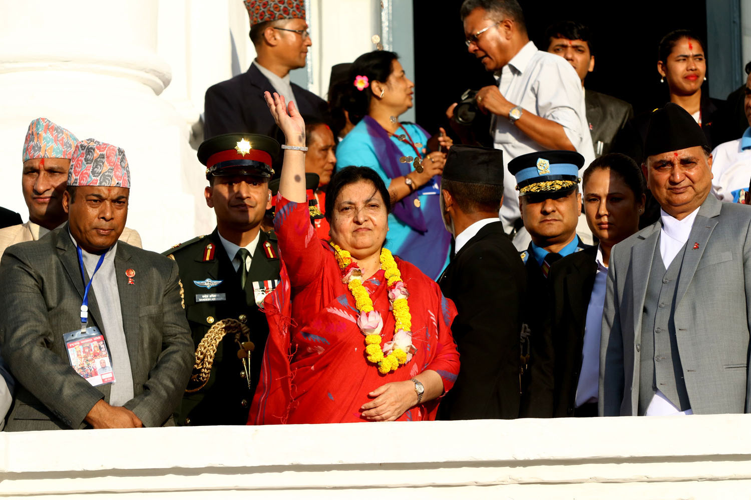 Acting Prime Minister Ishwar Pokharel, Chief Justice Om Prakash Mishra, Chairman of the National Assembly Ganesh Timilsina, chiefs of the constitutional bodies, security chiefs, representatives of the diplomatic missions in Nepal and commoners also attended the ceremony.
