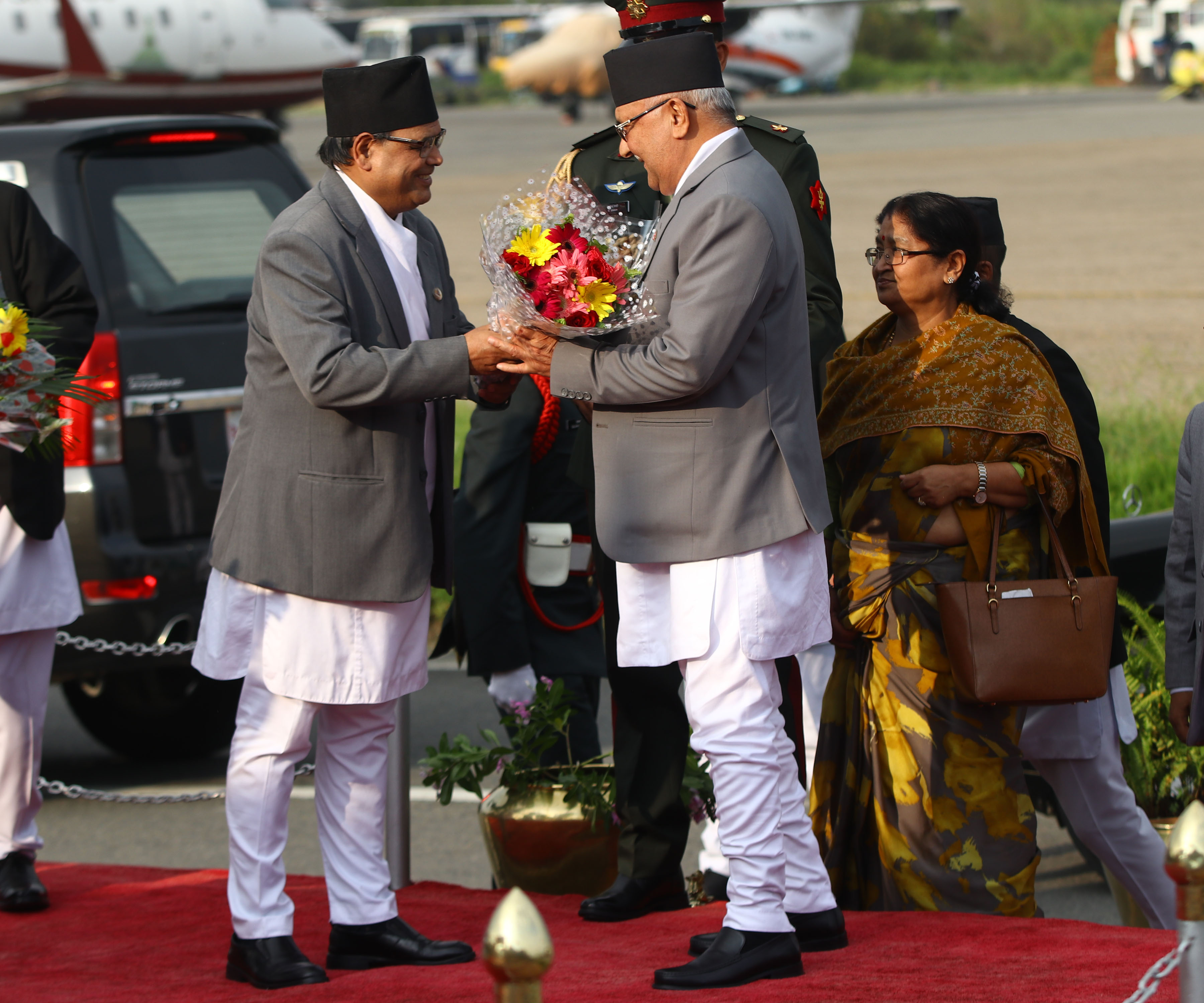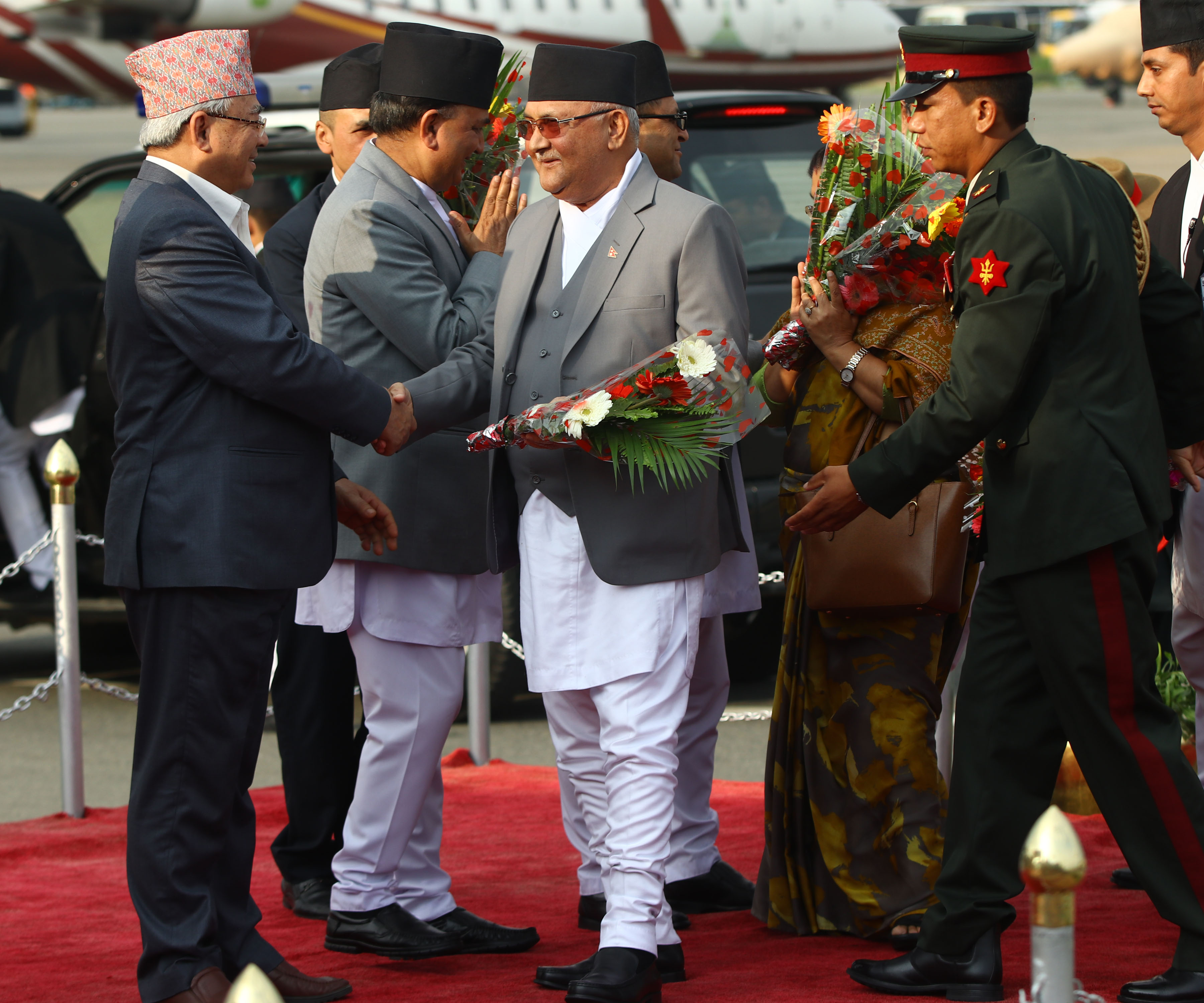 प्रधानमन्त्री ओलीको स्वागतका लागि सभामुख, राष्ट्रियसभाका अध्यक्ष, उपप्रधानमन्त्री ईश्वर पोखरेल, मन्त्री, नेकपाका नेता, सांसद, संवैधानिक अङ्गका प्रमुख, नेपाल सरकारका उच्चपदस्थ अधिकृत र सुरक्षा अङ्गका प्रमुखलगायत विमानस्थल पुग्नुभएको थियो ।