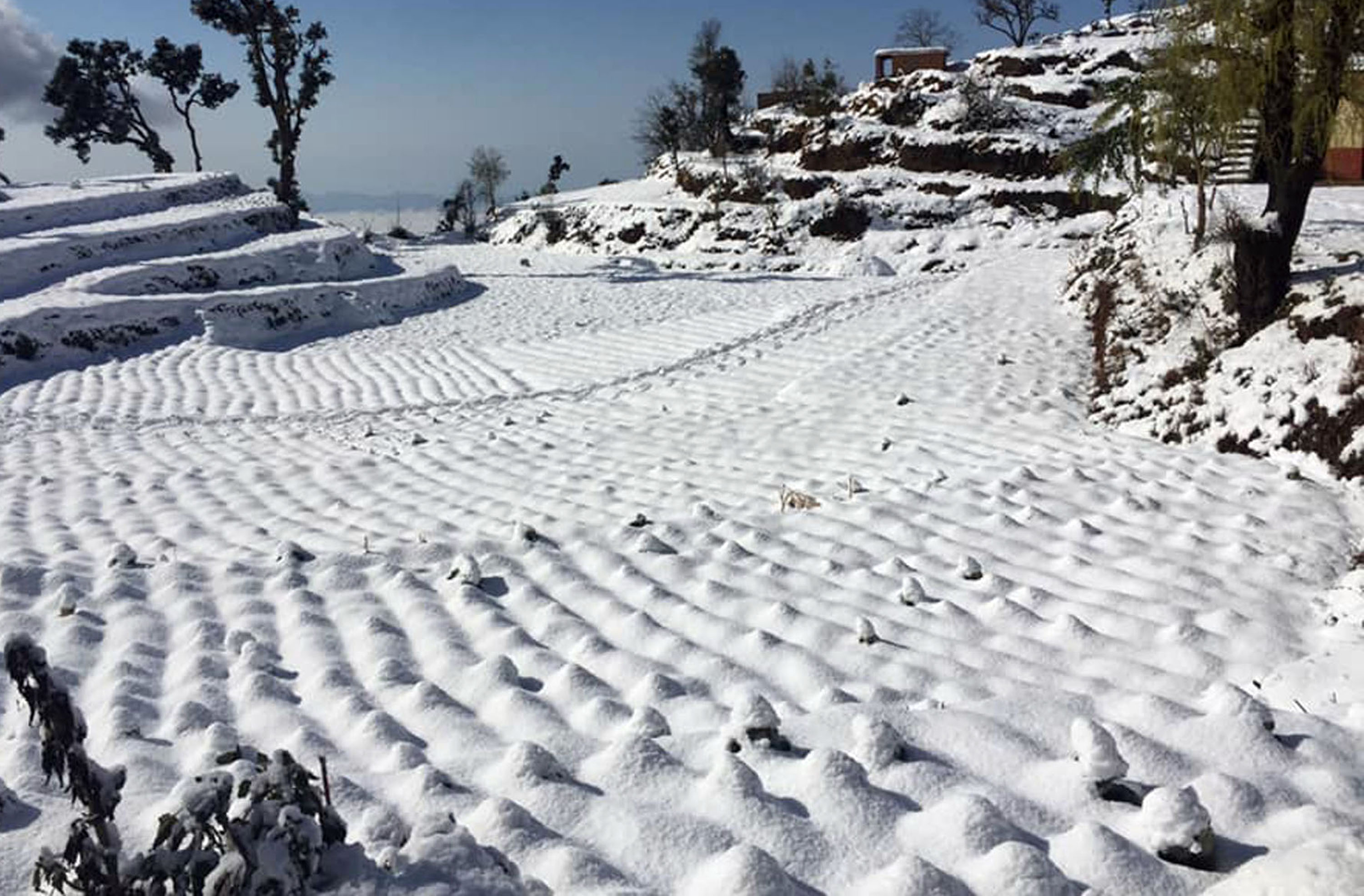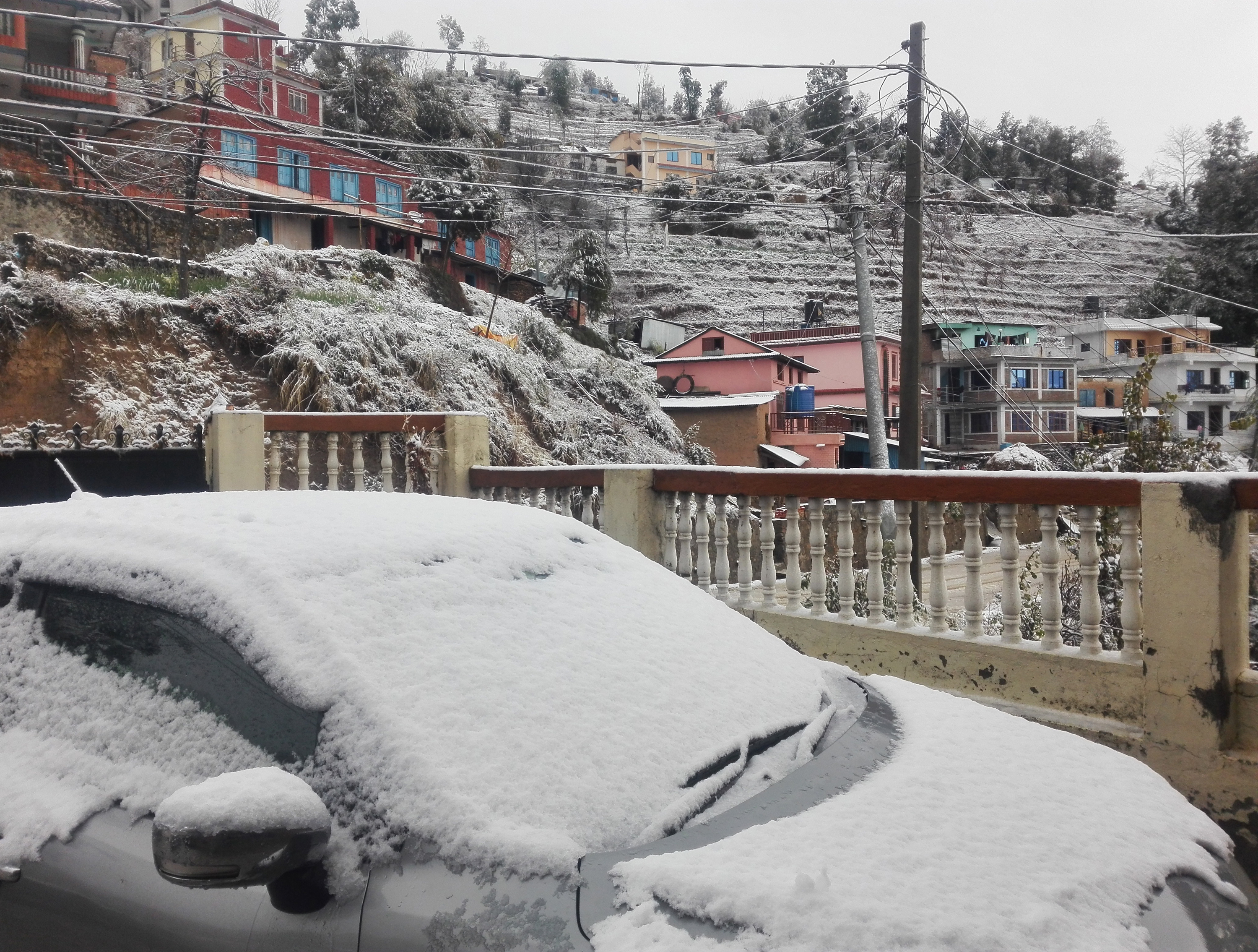 भक्तपुर, भक्तपुर शहरमा १२ वर्षपछि हिमपात भएको छ । भक्तपुरलगायत काठमाडौँ उपत्यकामा आज बिहानै हिमपात भएको हो । भक्तपुरको नगरकोट, चाँगुनारायण, सुडाल, ताथली, चित्तपोल, नंखेल, सिपाडो, नलिन्चोक, गुण्डु, रानीकोट, घ्याम्पेडाँडालगायतका क्षेत्रमा हिमपात हँुदा जनजीवन प्रभावित भएको छ ।