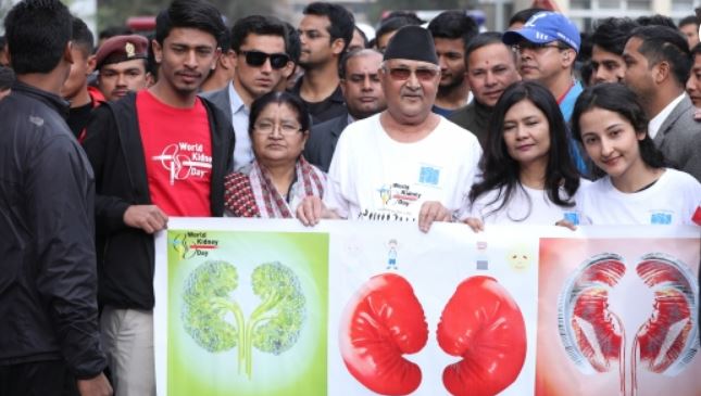 काठमाडौँ, विश्व मिर्गौला दिवसका अवसरमा त्रिभुवन विश्वविद्यालय शिक्षण अस्पतालको नेफ्रोलोजी विभाग फिजिसियन फर सोसियल रेस्पोन्सिविलिटी नेपाल (पीएसआरएन) र स्वतन्त्र विद्यार्थी युनियनले आज बिहान शिक्षण अस्पतालमा आयोजना गरेको कार्यक्रममा प्रधानमन्त्री केपी शर्मा ओली सहभागी हुनुभयो ।