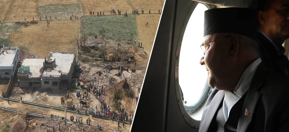 Prime Minister KP Sharma Oli cut short his visit to Jhapa and Morang districts and left for the storm-hit districts of Para and Bara this afternoon. Prime Minister Oli boarded a Nepali Army helicopter from the Chandragadhi airport of Jhapa earlier today.