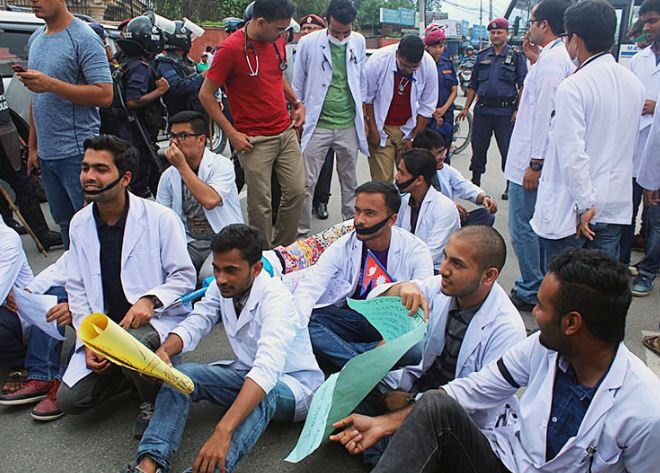 असमान तरिकाले चिकित्सक समायोजन गरेको लगायतका माग राख्दै यही चैत २० गतेको आकस्मिक भेलाले २१ गतेदेखि सञ्चालन गर्ने गरी चिकित्सकले आन्दोलनको घोषणा गरेका हुन् । आजमात्रै आन्दोलनका कारण स्वास्थ्य सेवामा गम्भीर असर परेको भन्दै नियमित काममा फर्कन वीर अस्पतालले गरेको आग्रहसमेत चिकित्सकले टेरेका छ्रैनन् । चिकित्सकले अस्पतालका भित्तामा ‘माफ गर्नुहोस्, मलाई बिरामी जाँच्न मन छ तर यतिबेला मै माथि अन्याय भएको छ’ भन्ने वाक्य लेखेर टाँसेका छन् ।
