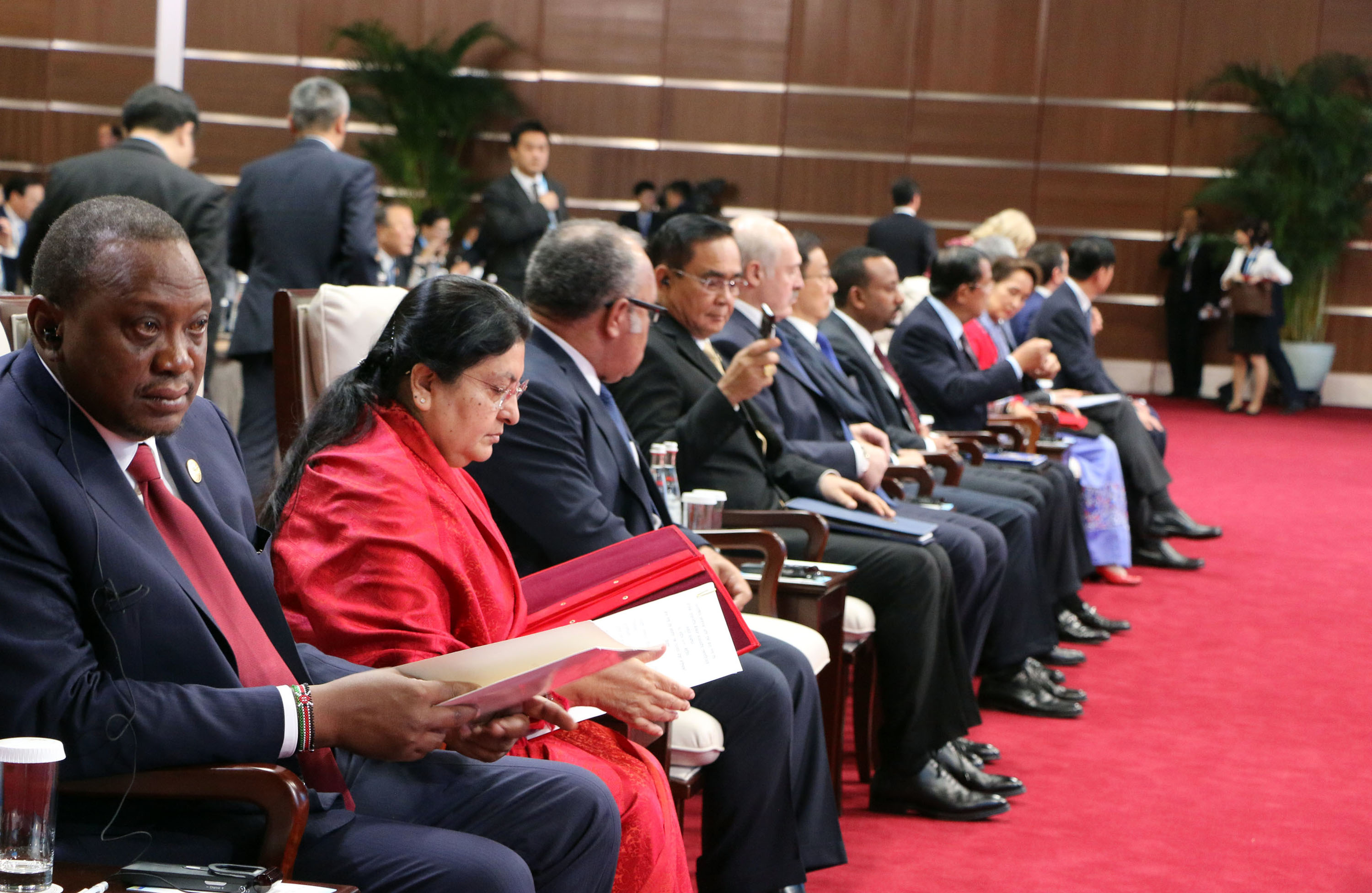 सो अवसरमा रुसका राष्ट्रपति भ्लादिमिर पुटिनका साथै अन्य मुलुकका सरकार प्रमुखहरुले पनि आफ्नो धारणा राख्नुभएको थियो । राष्ट्रपति भण्डारीका साथ परराष्ट्रमन्त्री प्रदीपकुमार ज्ञवाली, प्रदेश नं ३ का मुख्यमन्त्री डोरमणि पौडेल, चीनका लागि नेपालका राजदूत लीलामणि पौड्याल, नेपालका लागि चीनका राजदूत होउ याङ्ची, सङ्घीय संसद्का सदस्य, नेपाल सरकारका उच्च अधिकारी तथा निजी क्षेत्रका प्रतिनिधि पनि रहनुभएको थियो ।