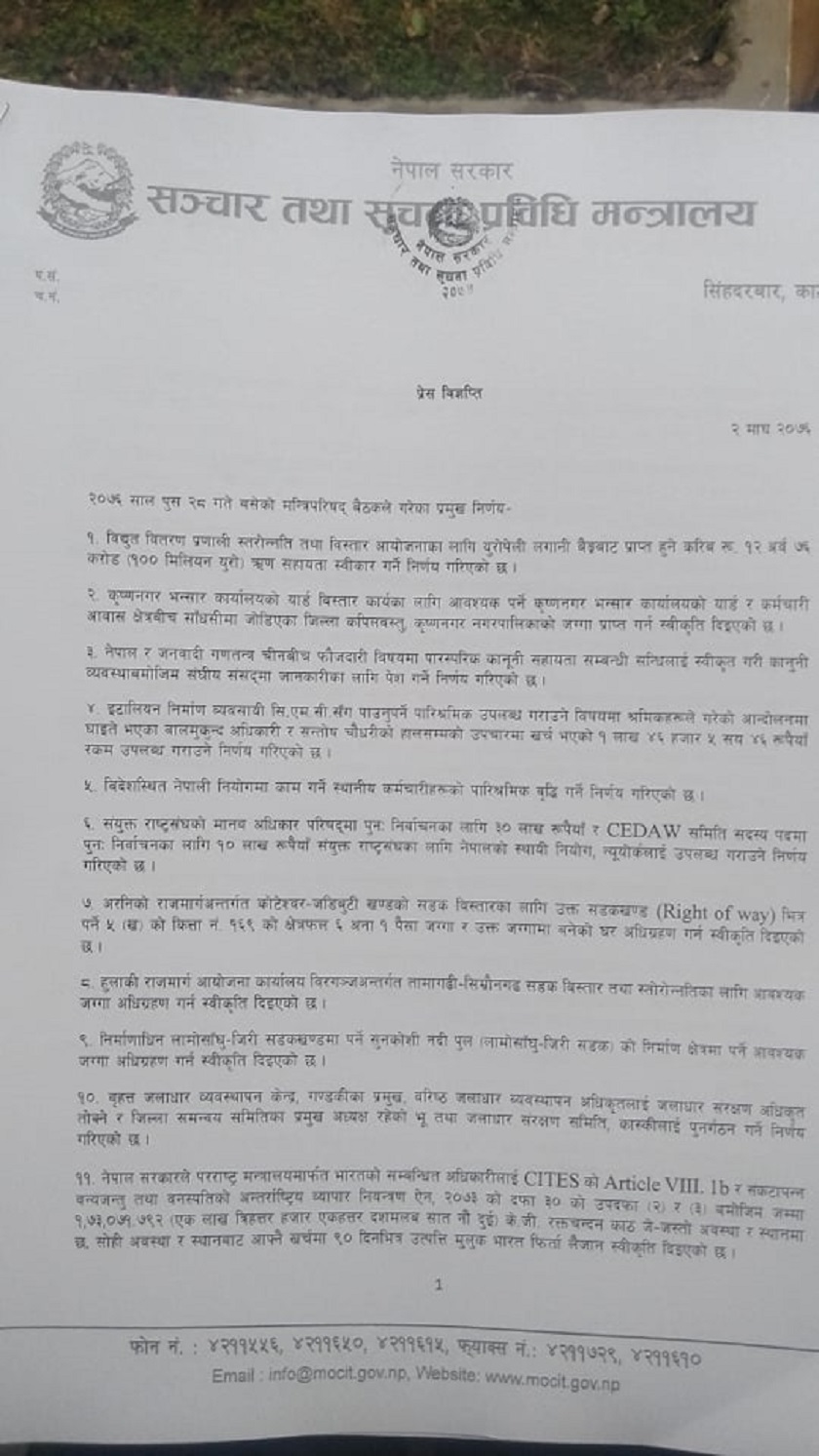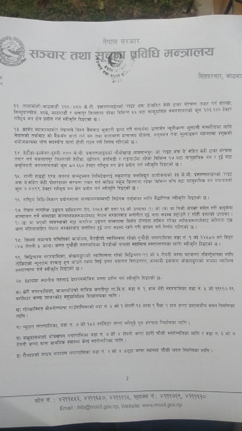 यस्ता छन् मन्त्रिपरिषद्का २० निर्णय