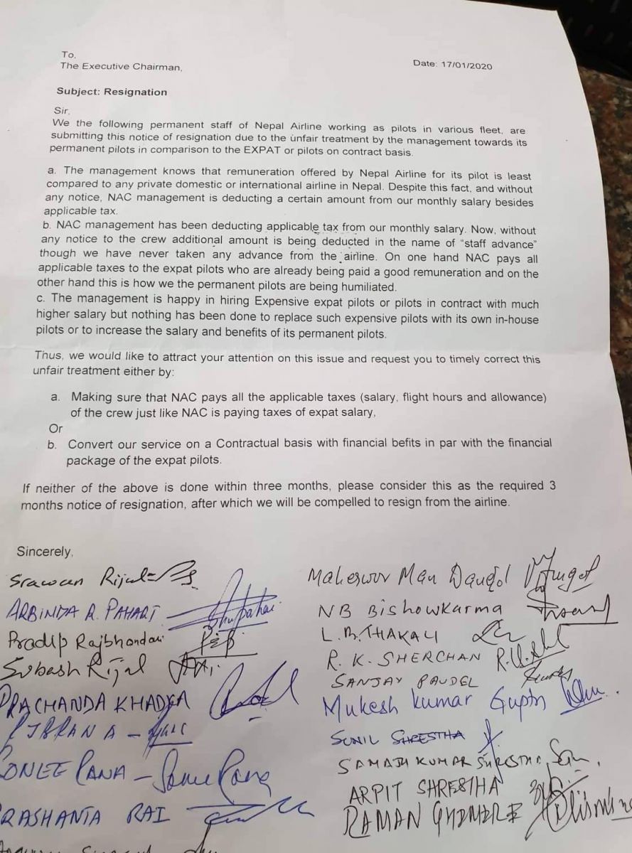 व्यवस्थापनको काममा नेपाली स्थायी कर्मचारी बढी खटिनुपर्ने भए पनि बढी सेवा सुविधा विदेशी पाइलटलाई दिइएको आरोप लगाउँदै उनीहरुले तीन महिनामा नेपाली पाइलटलाई तालिम दिएर सबै विदेशी पाइलट विस्थापन गर्ने वा नेपाली पाइलटले दिएको राजीनामा स्वीकृत गरेर सबैलाई करारमै काम चलाउन विकल्प दिएका छन् ।