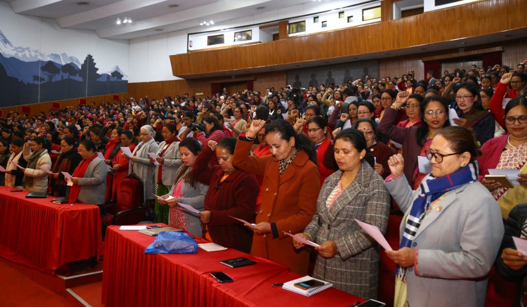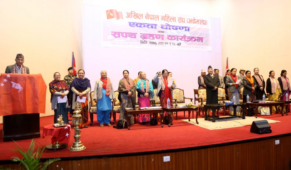 आफूले पछिल्लो समयमा नेतृत्व गरेको सरकारका राम्रा कामको केही झलक हालै सम्पन्न पार्टीको दोस्रो केन्द्रीय कमिटीको पूर्ण बैठकमा प्रस्तुत गरेको बताउँदै उहाँले त्यसलाई अध्ययन गरी प्रचार गर्न पनि महिला नेत्रीलाई आग्रह गर्नुभयो । उहाँले छाउपढी जस्ता कुप्रथा अन्त्यका लागि मनमस्तिष्कदेखि लाग्नुपर्ने आग्रह गर्दै विद्रोह र सङ्घर्षलाई सही बाटाका साथ सङ्घर्ष र मेलमिलापबाट रुपान्तरणमा ल्याउन आवश्यक रहेको पनि बताउनुभयो । सो सङ्घको एकतापछि चार हजार ४७५ सदस्यीय केन्द्रीय समितिका सदस्यले आज शपथ ग्रहण गरेका छन् । सङ्घका अध्यक्ष अमृता थापाले अब आफूहरु छिट्टै जिल्ला तहको एकतामा जाने जानकारी दिनुभयो ।