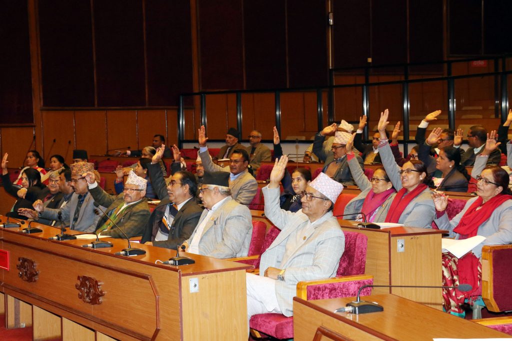 विधेयक पारित हुनुपूर्व विधेयकउपरको छलफलमा भाग लिँदै नेपाल कम्युनिष्ट पार्टी (नेकपा) का राष्ट्रियसभामा प्रमुख सचेतक खिमलाल भट्टराईले विधेयक मिहीन ढङ्गले छलफल गरेर आएको जिकिर गर्नुभयो । कम्युनिष्ट पार्टीले स्थापनाकालदेखि नै लोकतन्त्रका लागि पसिना बगाएकाले कुनै आशङ्का नराख्न अनुरोध गर्दै उहाँले महत्वपूर्ण विषयमा गम्भीर भएर प्रस्तुत हुन सबैलाई आग्रह गर्नुभयो ।