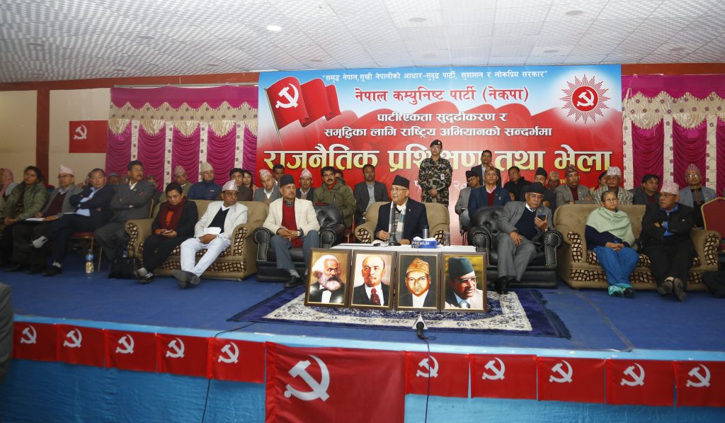 काठमाडौँ । प्रधानमन्त्री केपी शर्मा ओलीले सरकारले विकास र सुशासनका लागि राम्रा काम गरिरहे पनि पार्टी र नेतृत्वविरुद्ध बदनाम गर्न सङ्गठित प्रयत्नविरुद्ध एकताबद्ध हुनका लागि कार्यकर्तालाई आह्वान गर्नुभएको छ । नेपाल कम्युनिष्ट पार्टी (नेकपा) वाग्मती प्रदेशस्तरीय राजनीतिक प्रशिक्षण तथा भेलालाई सम्बोधन गर्दै उहाँले अहिले बाहिर आएको अडियो टेप प्रकरण पार्टी, सरकार र नेताको चरित्र हत्या गर्न सङ्गठित प्रयास भएको बताउनुभयो ।