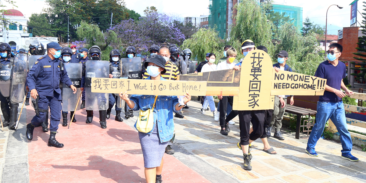 सिंहदरबार अगाडिबाट साढे ३ बजे करीब २५ चिनियाँलाई पक्राउ गरिएको हो । उहाँले निषेधित क्षेत्र तोडे सिंहदरबार आएर प्रहरीमाथि नै आक्रमण गरेपछि उनीहरुलाई नियन्त्रणमा लिइएको बताउनुभयो । ती नागरिक घर जान पाउनुपर्ने माग राख्दै ‘वी वान्ट टु गो ब्यााक होम’ प्ले कार्ड बोकेर निषेधित क्षेत्र तोडी सिंहदरबारतर्फ आएका थिए । “उनीहरु निषेधित क्षेत्रतर्फ आउन थालेपछि हामीले रोक्यौँ तर उनीहरु नमानेर सिंहदरबारसम्म आए”, उहाँले भन्नुभयो, “सिंहदरबार आएर पनि हामीमाथि आक्रमण गरेपछि हामीले तिनीहरुलाई नियन्त्रण लिएका हौँ ।”
