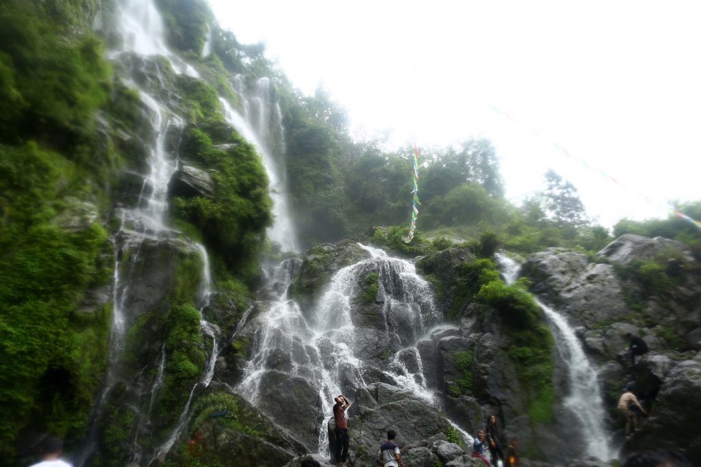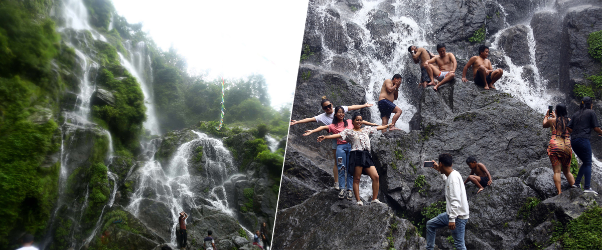 काभ्रेपलाञ्चोकको रोशी गाँउ पालिका २ स्थित काफल डाँडामा रहेको तिनधार झरना । प्रचार प्रसारको अभावले गर्दा सो स्थानमा ओझेलमा परेको स्थानीयहरु बताउछन । तस्वीर : रासस