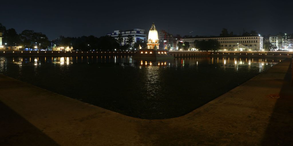 विसं २०७२ वैशाख १२ गतेको भूकम्पले क्षति पु¥याएको काठमाडौँको रत्नपार्कस्थित ऐतिहासिक रानीपोखरीको बीच भागमा रहेका बालगोपालेश्वर मन्दिरमा शुक्रबार साँझ देखिएको दृश्य । तस्बिर: रोशन सपकोटा/रासस