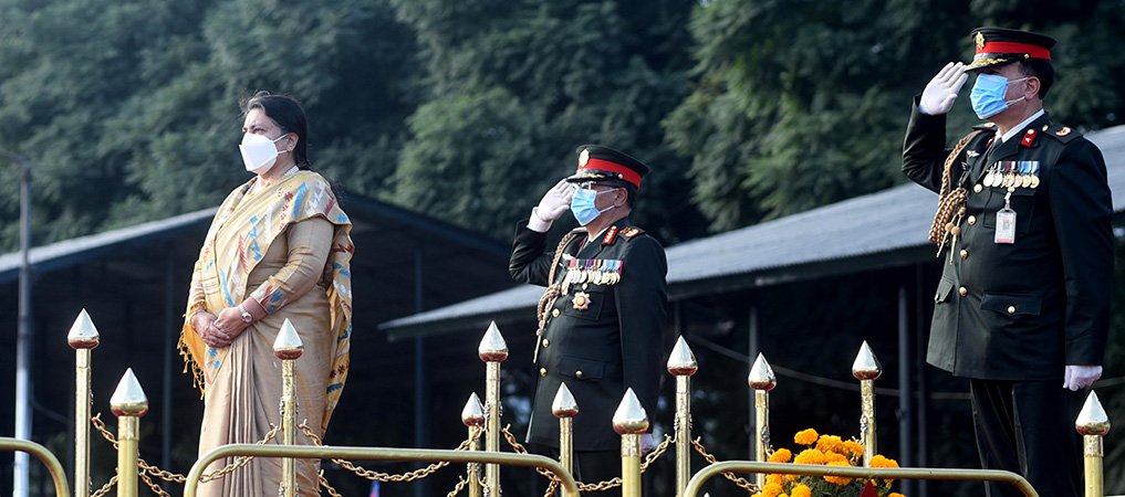 काठमाडौं । बडादसैँ फूलपातीका अबसरमा आज नेपाली सेनाले टुडिखेलमा एक समारोहको आयोजना गरेको छ । विगतका वर्षहरुमा भव्य रुपले धेरै पाहुनालाई निम्तो दिएर मनाउने गरिएपनि यस वर्ष कोरोना महामारीका कारण थोरै पहुनाहरुको उपस्थितिमा फूलपानी मनाइएको छ ।