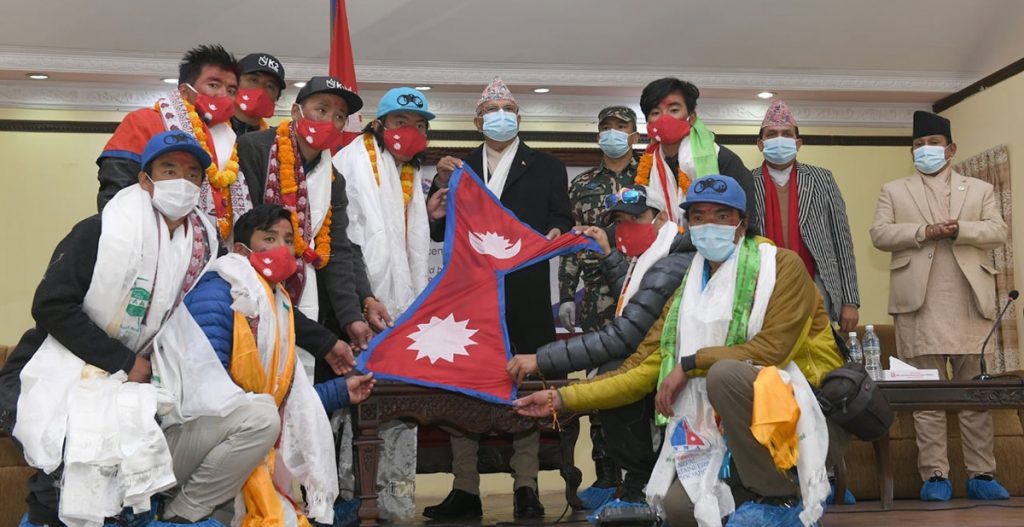 आज स्वदेश फर्किएका उनीहरुलाई प्रधानमन्त्री निवास बालुवाटारमा प्रधानमन्त्री केपी शर्मा ओलीले आरोहीहरूलाई दोसल्ला र प्रमाण पत्रद्वारा सम्मान गर्नुभएको हो ।
