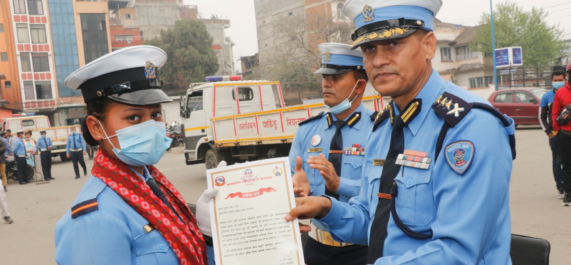 ट्राफिक नियम उल्लङ्घन गर्ने चालकहरूले कारबाहीबाट बच्न र कारवाही पश्चात हुने प्रक्रिया झन्झटिलो मानेर ट्राफिक प्रहरीलाई आर्थिक प्रलोभनमा पार्न खोज्दछन, प्रलोभनमा नपरी त्यस्ता चालकहरुलाई कारवाहीको दायरामा ल्याई आफ्नो जिम्मेवारीलाई पूर्णरूपमा निर्वाह गरी सङ्गठनको छवि उच्च राख्ने ट्राफिक प्रहरीलाई सम्मान एव पुरस्कृत गरिएको, उहाँले बताउनुभयो ।