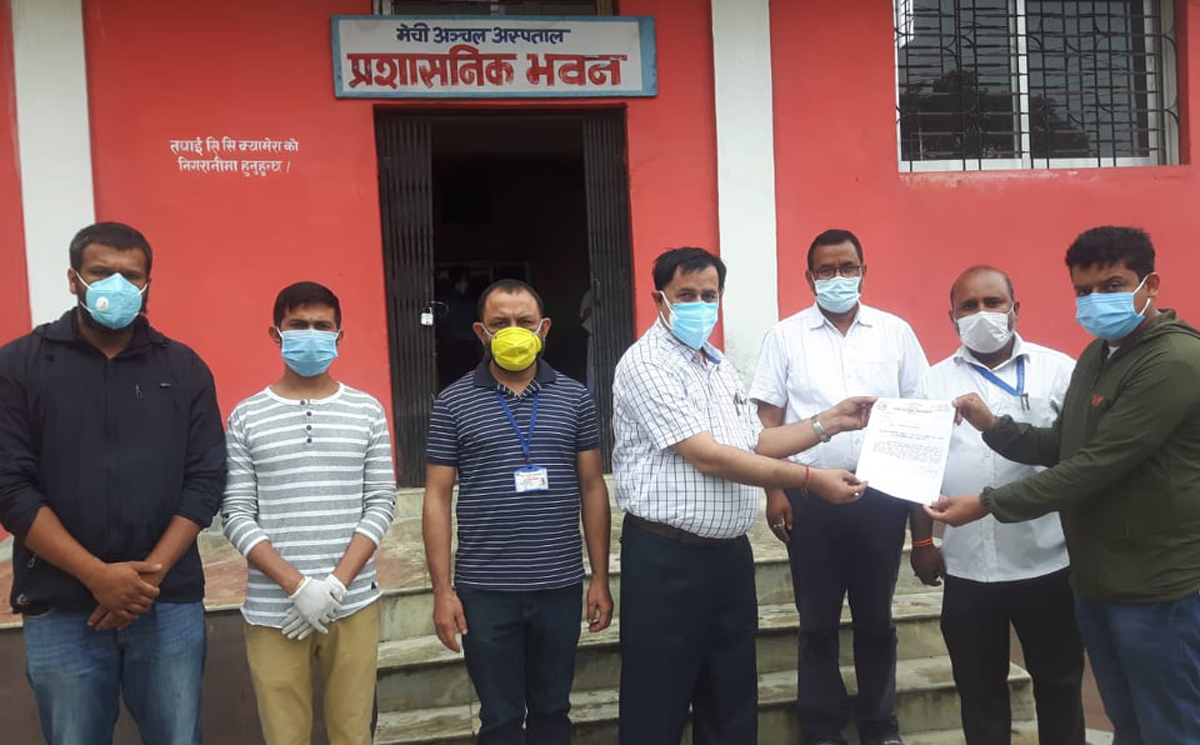 झापा । मेची अञ्चल अस्पताललाई कोरोना संक्रमितको पीसीआर परीक्षणका लागि आवश्यक पर्ने रिएजेन्ट किट विद्यार्थीहरुले सहयोग गरेका छन् । सामाजिक उत्तरदायित्व अन्तरगत झापाको विभूति विद्या मन्दिरका पूर्व विद्यार्थी (एसएलसी समूह २०६३) ब्याचले किट नभएर अस्पतालमा बन्द भएको पीसीआर परीक्षण तत्काल सुचारु गराउन चार सय थान रिएजेन्ट किट उपलब्ध गराएका हुन् ।