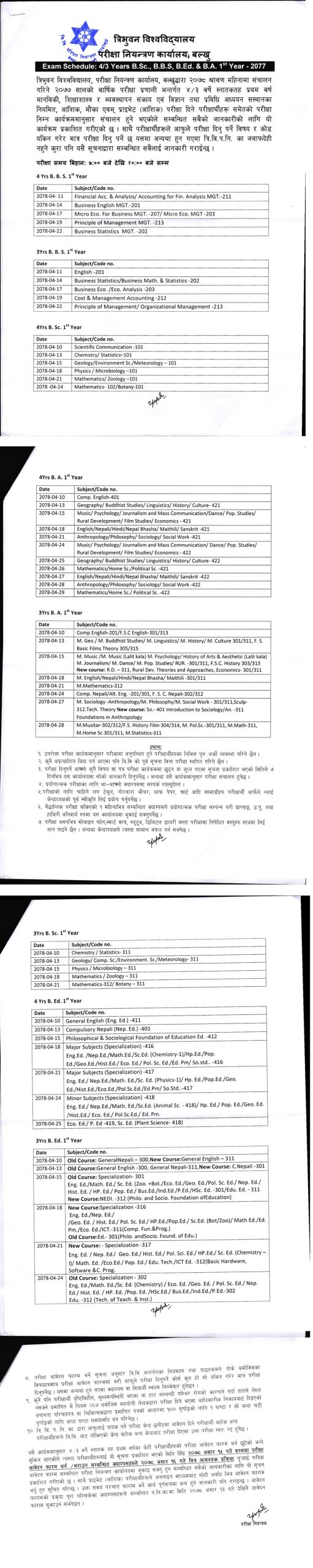 वार्षिक परीक्षा प्रणालीअन्तर्गत ४/३ वर्षे स्नातक तह प्रथम वर्ष मानविकी, शिक्षाशास्त्र र व्यवस्थापन संकाय एवं विज्ञान तथा प्रविधि अध्ययन संस्थानका नियमित, आंशिक, मौका एवं प्राइभेट (आंशिक) परीक्षा दिने परीक्षार्थीहरुको परीक्षा कोरोनाका कारण वैशाख १३ गतेपछि स्थगित भएका थिए ।