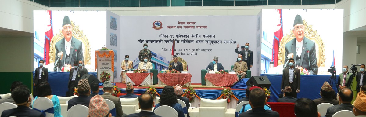 According to National Academy of Medical Sciences Vice Chancellor Pro Dr Dev Narayan Shah, the newly constructed surgical building is equipped with 509 beds. As he announced on the occasion, families of two workers who had died in an accident during the building construction works would be entitled for free hospital services.
