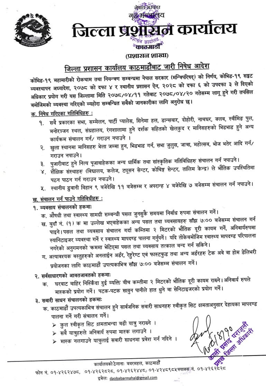हेर्नुहोस् जिल्ला प्रशासन कार्यालय काठमाडौँले जारी गरेको निषेधाज्ञाको सूचना
