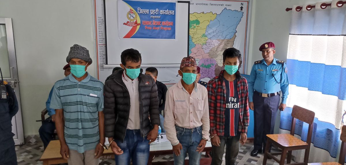प्रहरीले घटनामा संलग्न रहेको आरोपमा छिमेकी लोकबहादुर कार्कीलाई पक्राउ गरेको थियो । उनको बयानका आधारमा अन्यको पनि संलग्नता देखिएपछि थप ४ जनालाई पक्राउ गरिएको एसपी भीम दाहालले जानकारी दिनुभयो ।