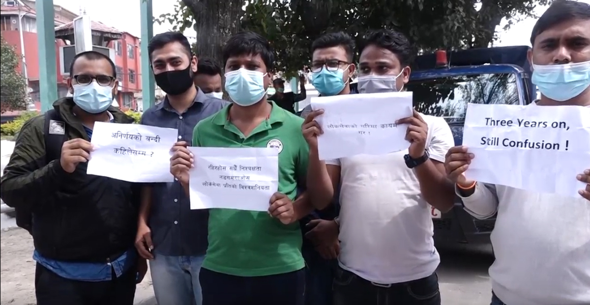 २०७६ मंसिरमा खुलाएको शाखा अधिकृतको विज्ञापनअन्तर्गत सवै परिक्षा पुरा हुँदा पनि नजिता प्रकाशन नगरेको भन्दै परीक्षार्थीहरुले विरोध प्रदर्शन गरेका हुन् ।