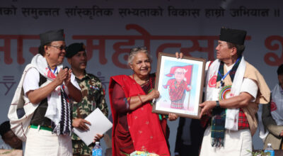 भक्तपुर । राष्ट्रपति विद्यादेवी भण्डारीले आज भक्तपुरको नवदुर्गा मन्दिरमा बडादसैँको अन्तिम दिन कोजाग्रत पूर्णिमाको अवसरमा नवदुर्गा भवानीको पूजाअर्चना गरी टीका तथा प्रसाद ग्रहण गर्नुभएको छ । राष्ट्रपति भण्डारीले राष्ट्रप्रमुखका रूपमा प्रसाद ग्रहण गर्नुभएको हो ।