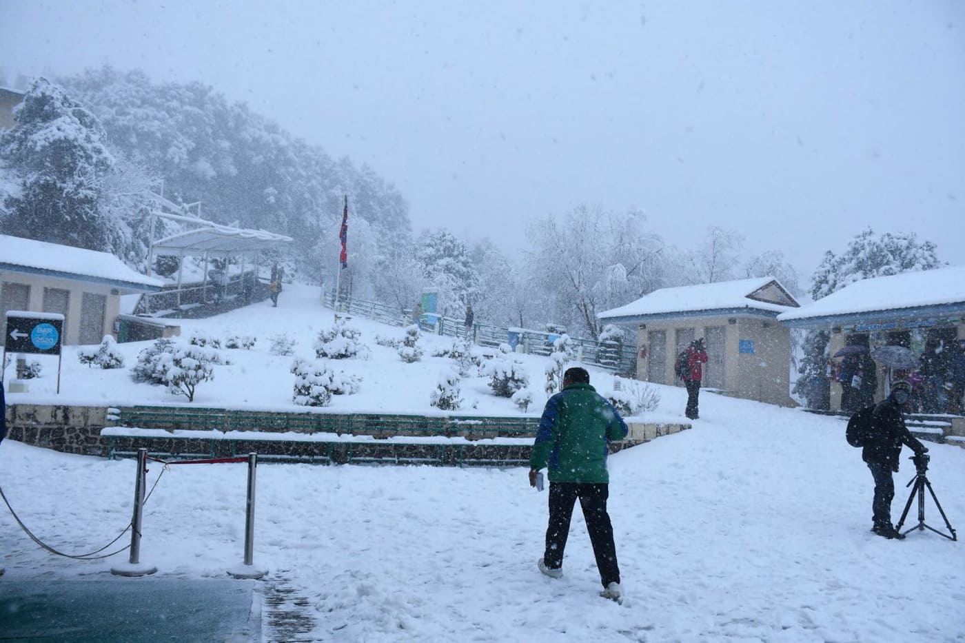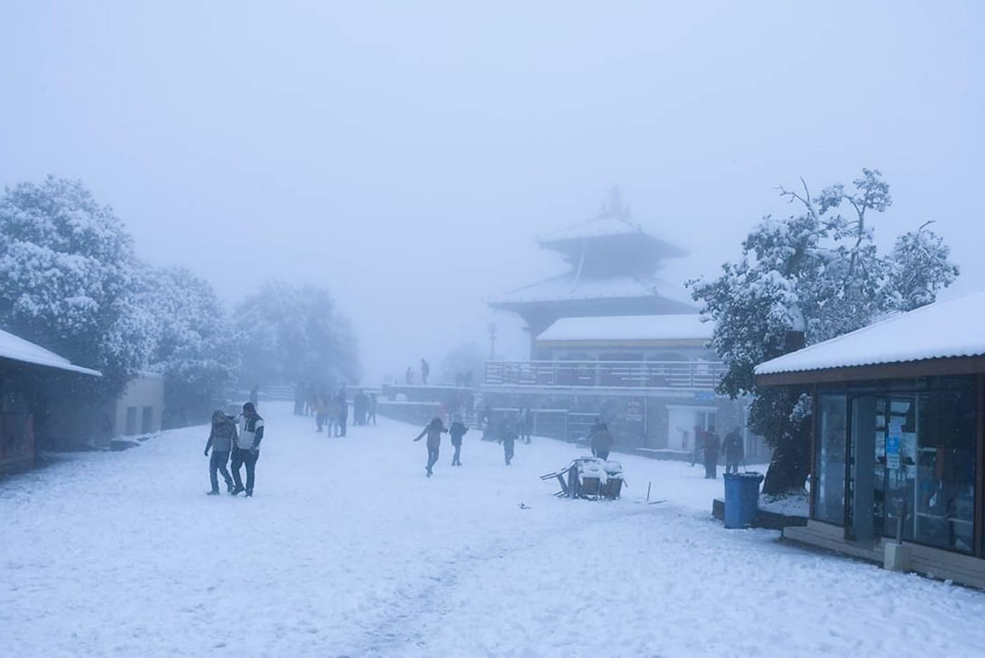 काठमाडौं । काठमाडौंको चन्द्रागिरिमा बुधबार बिहानैदेखि हिउँ परेपछि पर्यटकको घुइँचो लागेको छ । मंगलबार रातिदेखि काठमाडौंसहित देशका अधिकांश स्थानमा वर्षा भइरहेको छ । वर्षासँगै परेको हिउँले चन्द्रागिरि ढाकेको छ । हिउँ परेपछि काठमाडौं उपत्यकाका पर्यटक चन्द्रागिरि पुगेका छन् ।