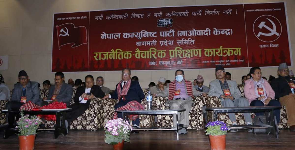 बुधबार दिउँसो सुरु भएको प्रशिक्षण कार्यक्रममा माओवादी बागमती प्रदेश समितिका सदस्य तथा विभिन्न भ्रातृसंगठनका नेताहरू सहभागी छन् ।