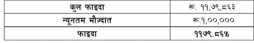 यसैगरी बैंकले २०७५ चैत्र २० देखि खातावालालाई बचतसँगै बीमा सुविधा उपलब्ध गराउने उद्देश्यअनुरुप हालसम्म देशभरका ७०० जना भन्दा बढी ग्राहकहरूलाई बीमा वापत रू.४ करोड ३० लाख भन्दा बढी रकम सहज रुपमा भुक्तानी गरिसकेको जानकारी गराउँदछौं ।