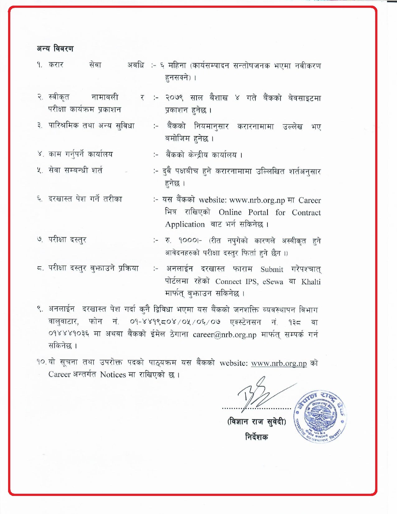 इच्छुक व्यक्तिले चैत्र २४ गतेभित्र आवेदन दिन सक्नेछन् । दुबै पदका लागि ४५ वर्ष उमेर ननाघेको हुनुपर्नेछ ।