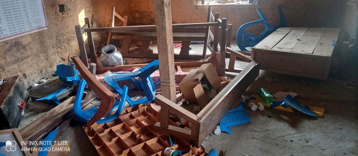 तोडफोडबाट प्लास्टिकका १७ वटा कुर्सी, काठका तीन वटा बेन्च, प्लास्टिकका एक वटा टेबल, एक थान ह्वाइटबोर्ड, भइपरी आउँदा प्रयोग गर्न राखिएको दुई वटा हेलमेट, दुई थान पावर सकेट लगायत सामानमा क्षति पुगेको वडाध्यक्ष भलाराज राईले बताए ।