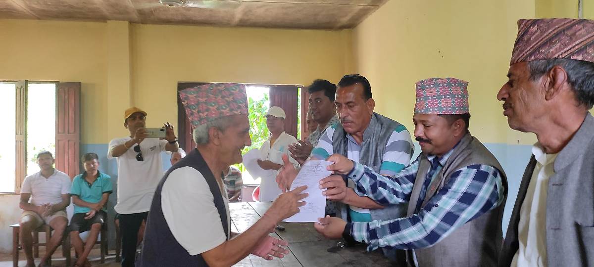 शुक्रबार फेसबुकमा एक स्टाटस राख्दै उनले भूमिहीन सुकुम्बासीले मेयरमा रेणु दाहाल र उपमेयरमा चित्रसेन अधिकारीलाई विजयी गराउन प्रतिबद्धता जनाएको बताएका छन् । मतदातालाई प्रभावित पार्न निस्सा बाँडिएको कार्यक्रममा साझा उम्मेदवारलाई जिताउने प्रतिबद्धता आएको उनले दाबी गरेका छन् ।