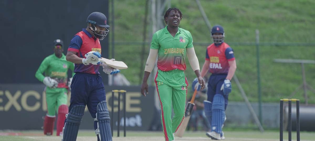 नेपाललाई सस्तैमा समेट्न जिम्बावेका ब्राड एभान्सले सर्वाधिक चार विकेट लिए । ८।३ ओभर बलिङ गरेका एभान्सले २७ रन खर्चिए । यसबाहेक, भिक्टर न्युची, ब्रान्डन मभुटा र सेफास झुवाओले समान दुई विकेट लिए ।