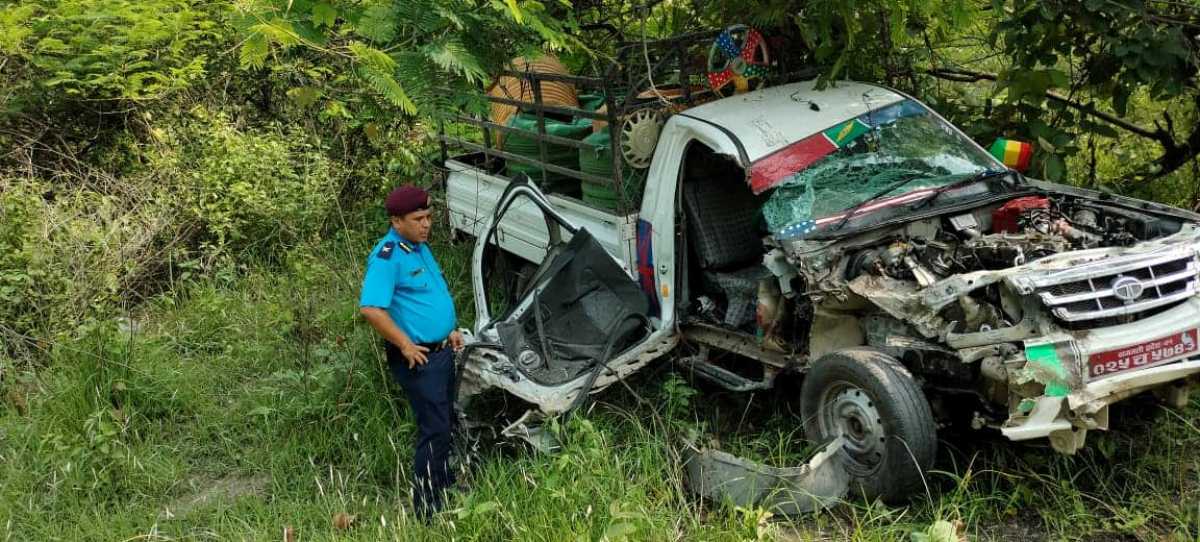 तीव्र गतिमा रहेको माछा बोक्ने बोलेरो अनियन्त्रित भएर आफ्नै साइडमा गुडिरहेको बसलाई ठक्कर दिन पुगेको थियो । पिकअपबाट जोगिन खोज्दा बस अनियन्त्रित भएर पल्टिएको प्रहरीको आशंका छ । बससँग ठोक्किएको पिकअप भ्यान छुट्टिएर जंगलभित्रै पुगेको छ । बस सडक किनारमा पल्टिएको छ ।