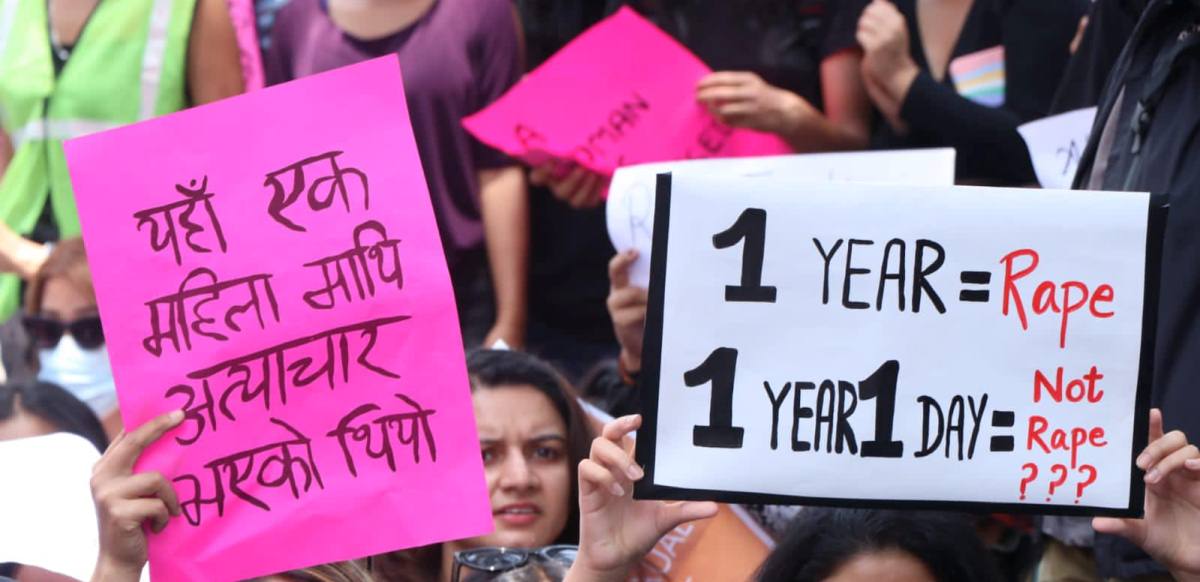 काठमाडौं बलात्कारीलाई सजाय माग गर्दै माइतीघरमा महिलाले गरेको प्रदर्शन । एक युवतीले सामाजिक सञ्जालमा सौन्दर्य प्रतियोगिताको नाममा आफूमाथि बलात्कार भएको खुलासा गरेपछि महिलाहरूले प्रदर्शन गरेका हुन् ।