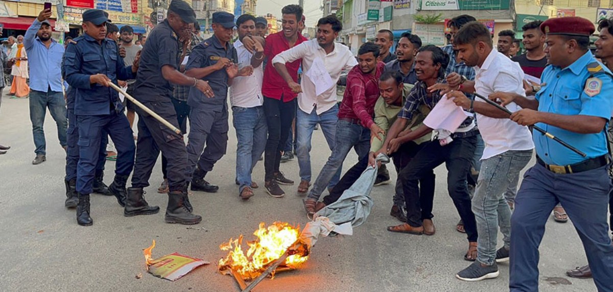 स्थानीय भानु चोकमा पुत्ला जलाउने क्रममा उनीहरुको प्रहरीसँग केहिबेर घम्साघम्सी पनि भएको थियो ।