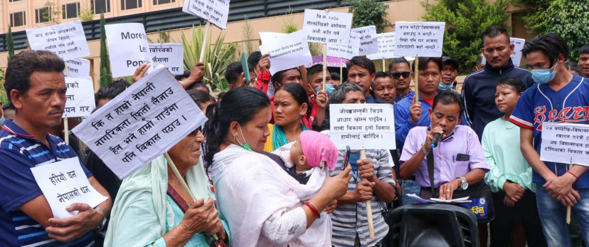 स्थानीयले ५० वर्षदेखि त्यहाँ बसोबास गर्दै आएका स्थानीयहरुलाई विस्थापित गराउने षड्यन्त्र राज्यबाट भइरहेको भन्दै आपत्ति जनाउँदै आएका छन् ।