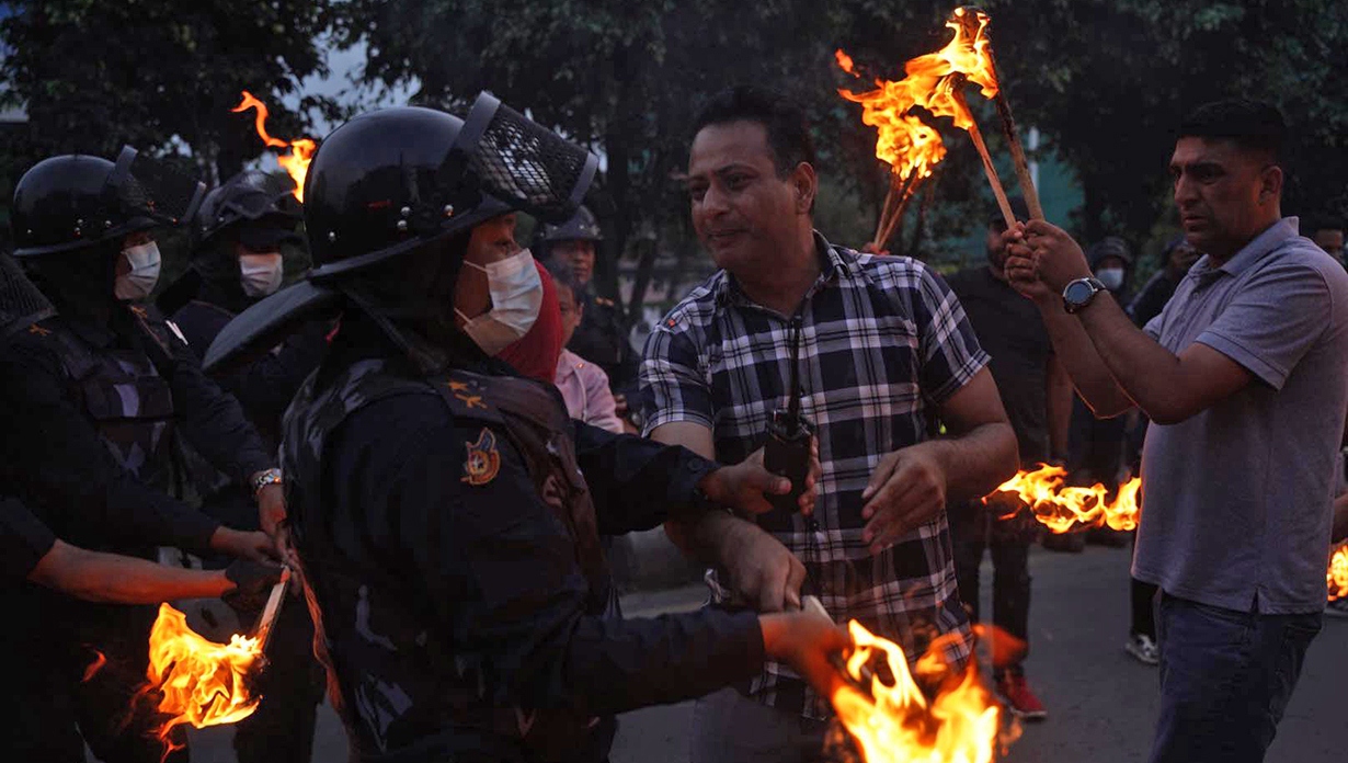 सरकारले सवारी साधनमा इम्बोस्ड नम्बर प्लेट अनिवार्य गरेको विरोधमा युवा संघले मंगलबार साँझ मसाल जुलुस प्रदर्शन गरेको हो ।