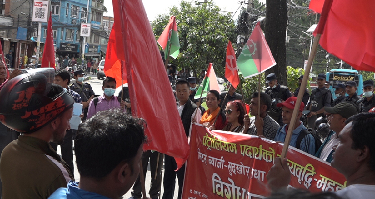 काठमाडौं । सरकारले गरेको पेट्रोलियम पदार्थको अत्यधिक मूल्यवृद्धिको विरोधमा संयुक्त ट्रेड युनियन संघर्ष समितिले प्रदर्शन गरेको छ ।