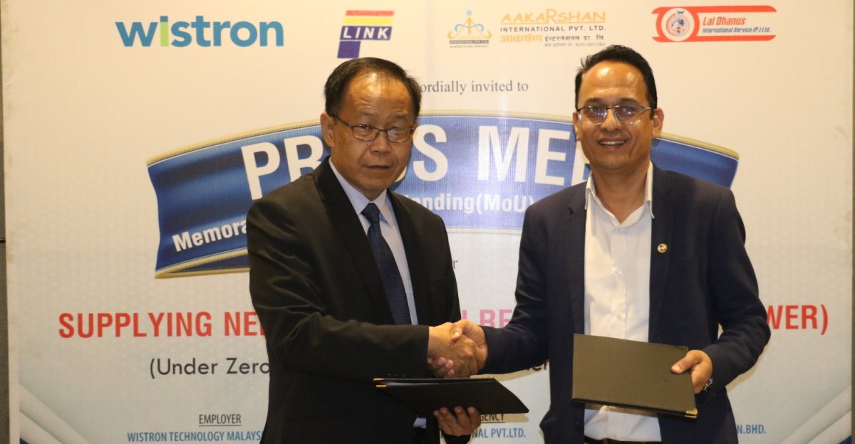 काठमाडौँ । मलेसियामा रहेको विश्वकै ठूलो आइटी कम्पनीले शून्य लागतमा नेपाली श्रमिक लैजाने भएको छ । आज आयोजित एक कार्यक्रममा मलेसियाको विस्र्टन टेक्नोलोजी र नेपालस्थित मेनपावर कम्पनी आकर्षण इन्टरनेशनल र लालधनुष इन्टरनेशनलबीच द्विपक्षीय सम्झौता भएको छ ।