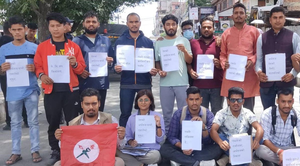 काठमाडौं । नेपाल राष्ट्र बैंकका गभर्नर महाप्रसाद अधिकारीको बर्खास्तीको माग गर्दै नेपाल विद्यार्थी संघले प्रदर्शन गरेको छ । माइतीघर मण्डलाअगाडि शुक्रबार बिहान नेविसंघले गभर्नरविरुद्ध प्रदर्शन गरेको हो ।