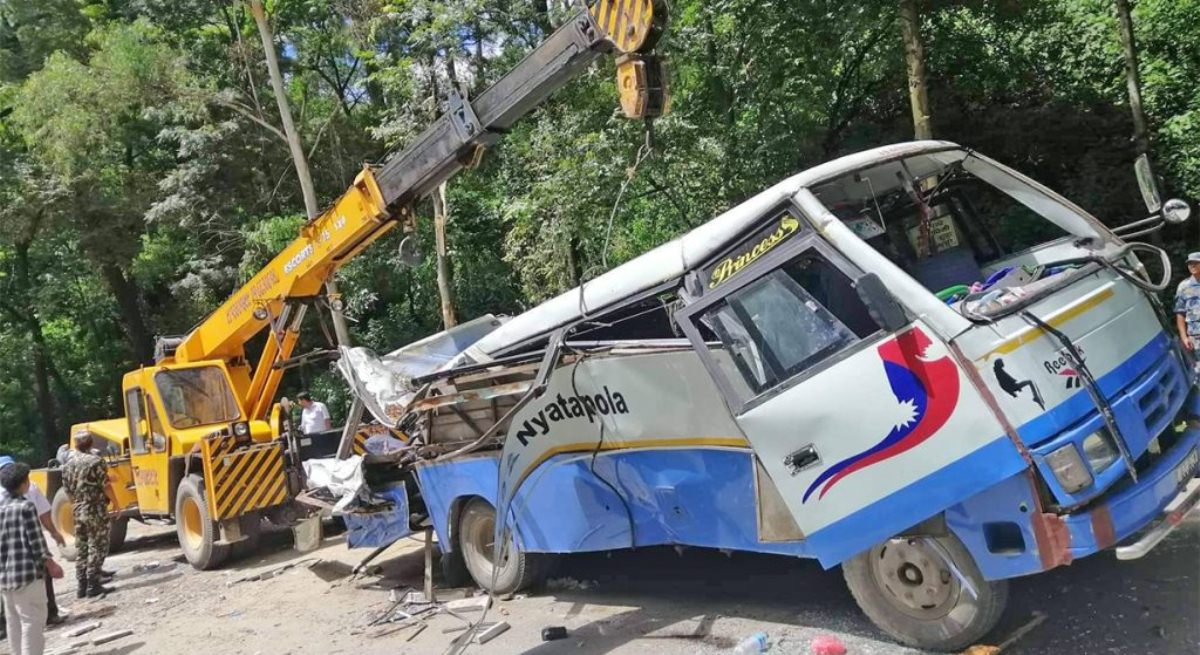 रुख ढलेर सडकमा गुडिरहेको यात्रुबाहक बसमा पर्दा गाडीमा रहेका दुई जनाको मृत्यु भएको हो भने स्कुटरलाई थिच्दा स्कुटरमा सवार एक जनाको मृत्यु भएको हो ।