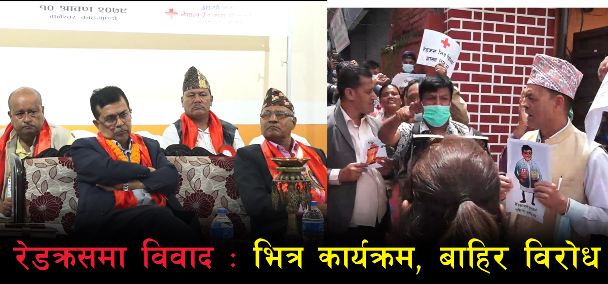 रेडक्रस सोसाइटीले मंगलबार काठमाडौंमा वर्तमान सन्दर्भमा नेपाल रेडक्रस सोसाईटीको समस्या र भावी मार्गचित्र बिषयमा छलफल गर्न राष्ट्रिय भेला आयोजना गरेको थियो । तर असन्तुष्ट पक्षले रेडक्रसभित्र विधिको शासन कायम लागू गर, रेडक्रसलाई निजी कम्पनी नवनाउ, अदालतको आदेश पालना गर लगाएतका प्लेकार्ड देखाउदै प्रदर्शन गरेका हुन् ।