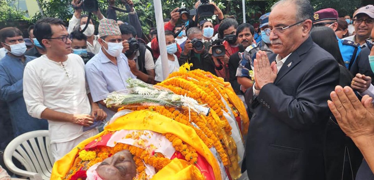 काठमाडौँ । माओवादी केन्द्रका अध्यक्ष पुष्पकमल दाहाल ‘प्रचण्ड’ले नेपाली कांग्रेसका दिवंगत नेता प्रदीप गिरीप्रति श्रद्धाञ्जली अर्पण गरेका छन्। सानेपास्थित नेपाली कांग्रेको पार्टी कार्यालयमा राखिएको गिरीको पार्थिव शरीरमा माल्यार्पण गरी अध्यक्ष दाहालले श्रद्धाञ्जली अर्पण गरेका हुन् ।