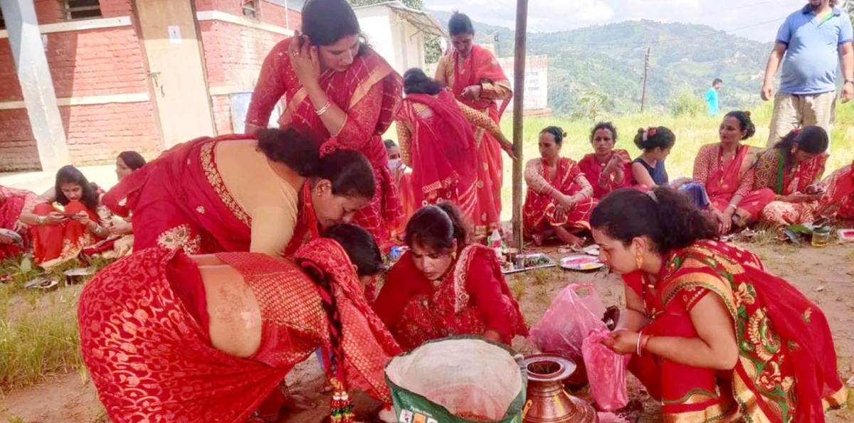 महिलाले आज बिहानै उठेर स्नान गरी हरितालिकाको व्रत समापनका लागि गोदान, पूर्णपात्रलगायत धार्मिक कृत्य नजिकको नदी, खोला, ताल, तलैया र पोखरीमा गई ३६५ वटा दत्तिवनले दाँत माझ्ने, गाईको गोबर, माटो र खरानी लगाई स्नान गर्दछन् ।